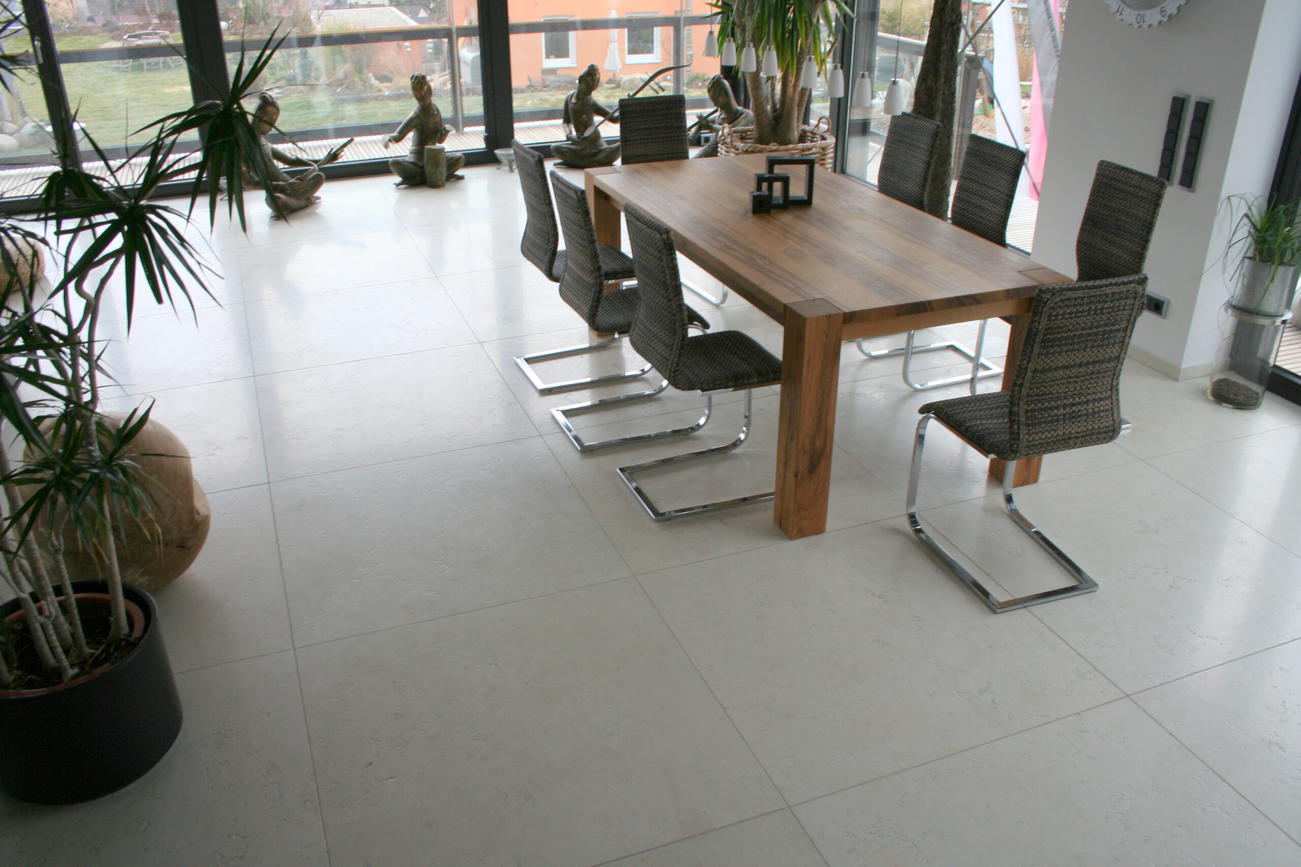 Ein Bodenbelag aus Naturstein ist der robusteste Werkstoff für diesen Zweck und bietet zugleich eine ästhetische Vielfalt. Ob rau und unbehandelt oder hochglanzpoliert, schlicht verlegt oder mit aufwendigen Einlegearbeiten – Naturstein vereint höchste Qualität, Langlebigkeit und zeitlose Eleganz.